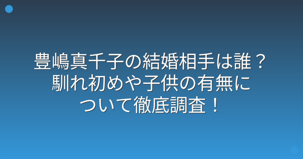 豊嶋真千子の結婚相手は誰?馴れ初めや子供の有無について徹底調査!