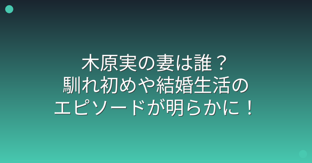 木原実の妻は誰?馴れ初めや結婚生活のエピソードが明らかに!