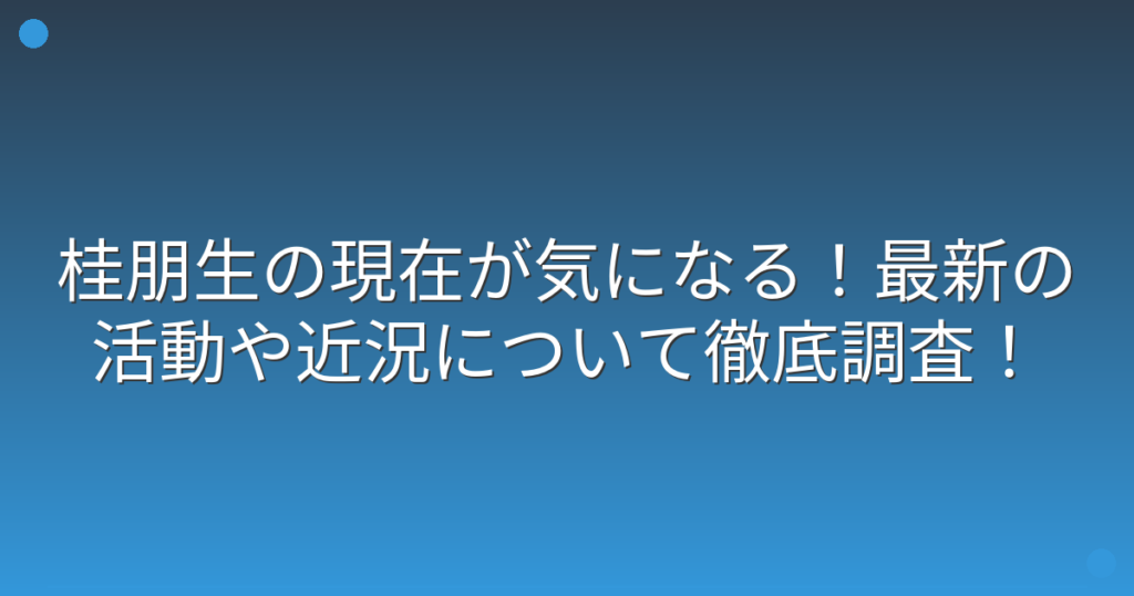 桂朋生の現在が気になる!最新の活動や近況について徹底調査!
