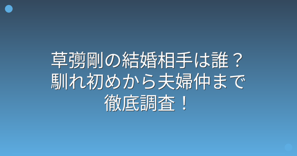 元SMAPのメンバーとして長年活躍してきた草彅剛さんの結婚について、多くのファンが関心を寄せています。 2023年に結婚を発表した草彅剛さんですが、お相手や馴れ初めについて気になる方も多いのではないでしょうか。 そこで今回は、草彅剛さんの結婚相手... -