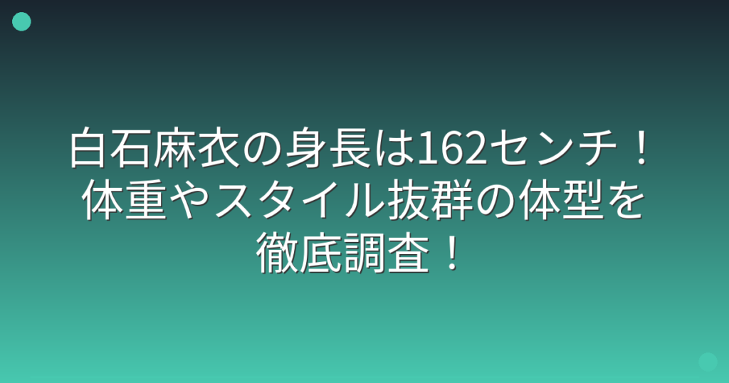 白石麻衣の身長は162センチ!体重やスタイル抜群の体型を徹底調査!