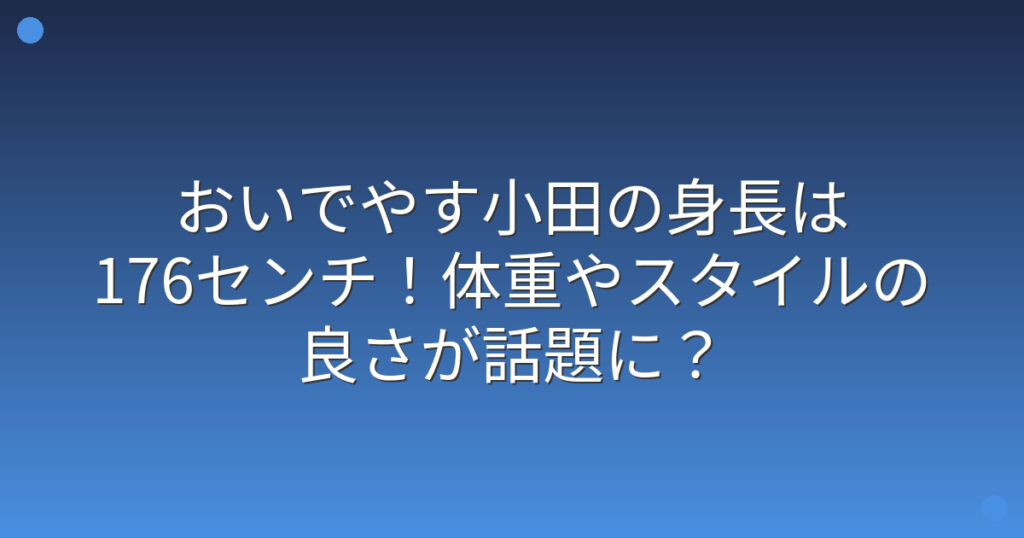お笑いコンビ「おいでやす小田」として活躍されているおいでやす小田さんですが、最近その身長やスタイルの良さが注目を集めていますね。 テレビで見るとスラッとした印象がありますが、実際の身長はどれくらいなのでしょうか。 そこで今回は、おいでやす... -