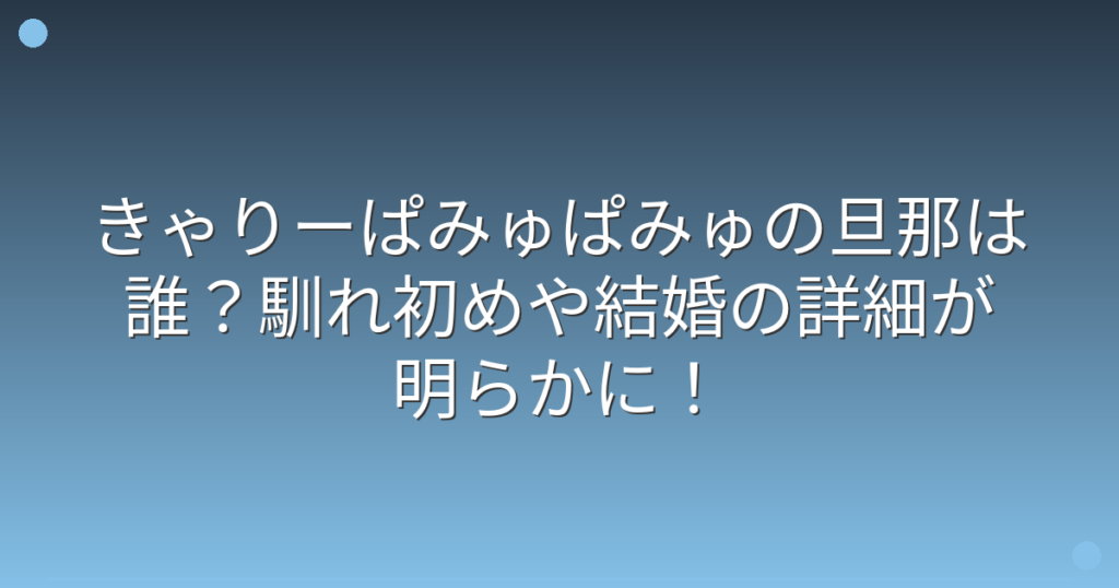 きゃりーぱみゅぱみゅさんの結婚が話題になっていますね。 独特なファッションと個性的な楽曲で世界中にファンを持つきゃりーぱみゅぱみゅさんですが、プライベートな結婚生活についても注目が集まっています。 そこで今回は、きゃりーぱみゅぱみゅさんの... -