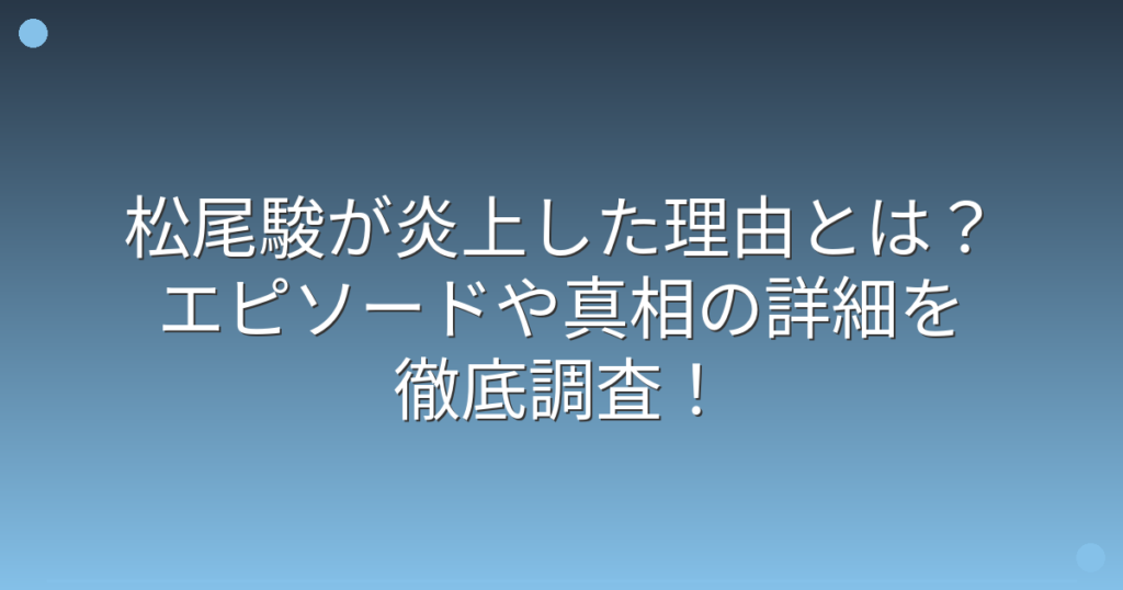 松尾駿が炎上した理由とは?エピソードや真相の詳細を徹底調査!