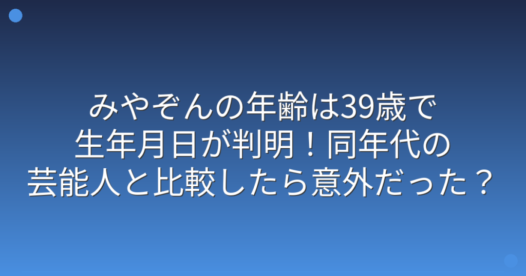 みやぞんの年齢は39歳で生年月日が判明!同年代の芸能人と比較したら意外だった?