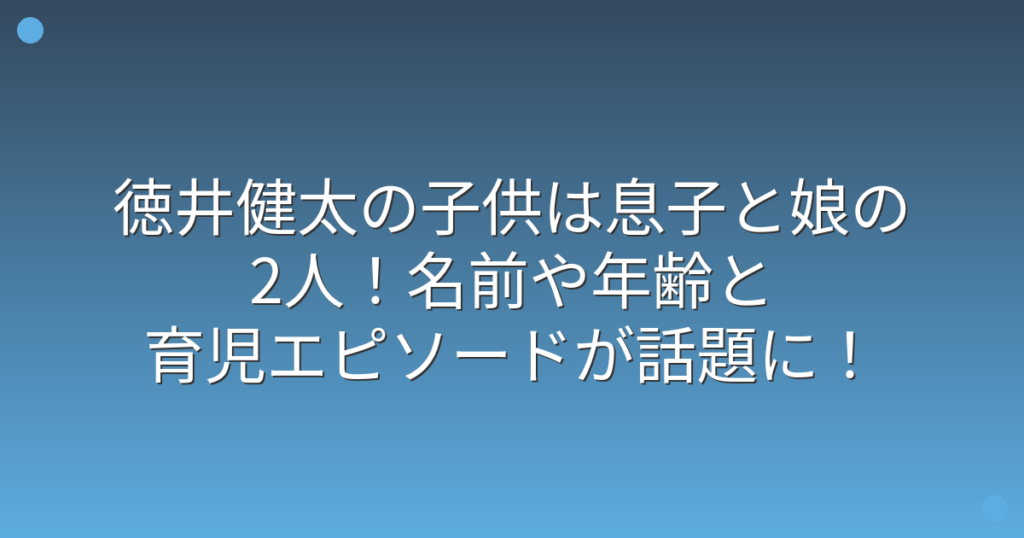 徳井健太の子供は息子と娘の2人!名前や年齢と育児エピソードが話題に!