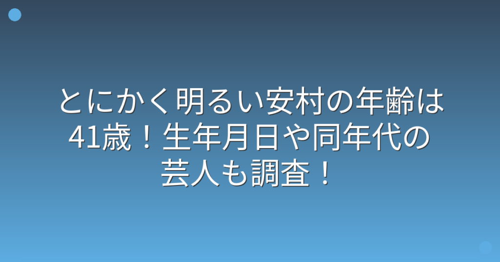 とにかく明るい安村の年齢は41歳!生年月日や同年代の芸人も調査!