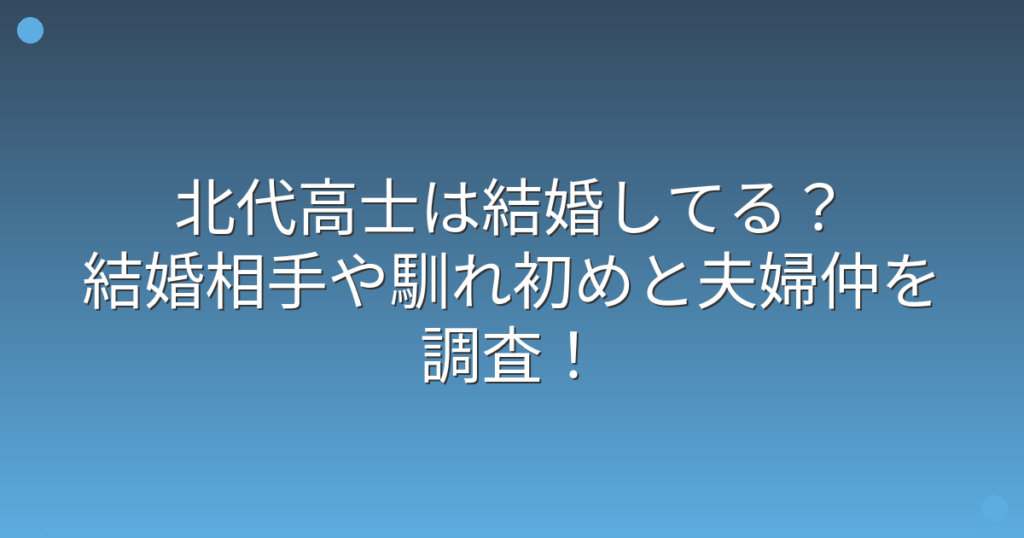 北代高士は結婚してる?結婚相手や馴れ初めと夫婦仲を調査!