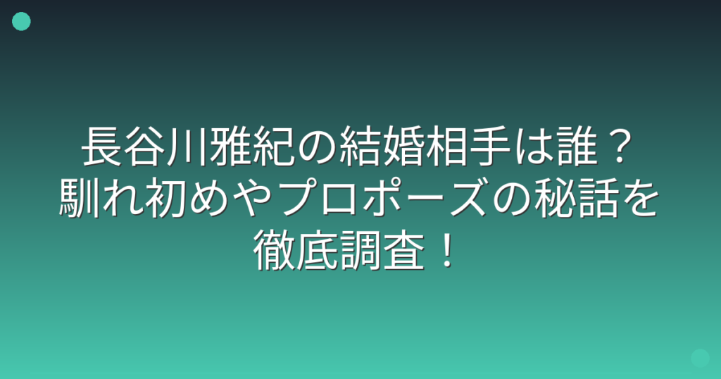 長谷川雅紀の結婚相手は誰?馴れ初めやプロポーズの秘話を徹底調査!
