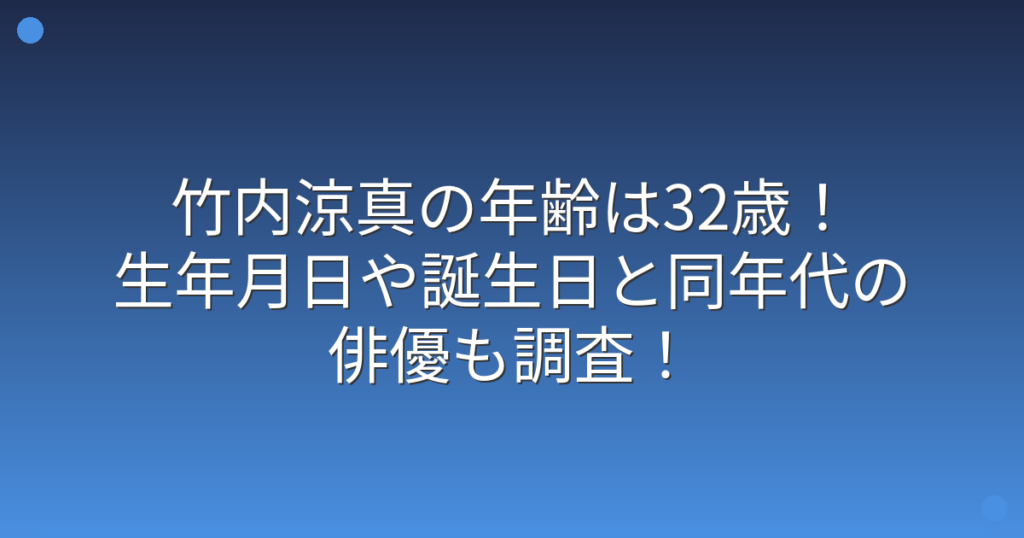 竹内涼真の年齢は32歳!生年月日や誕生日と同年代の俳優も調査!