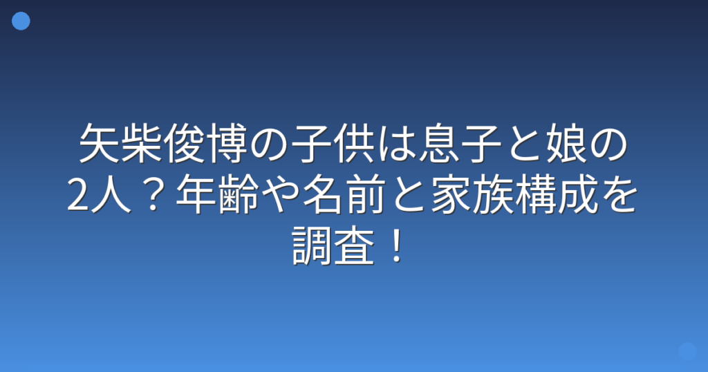 矢柴俊博の子供は息子と娘の2人?年齢や名前と家族構成を調査!