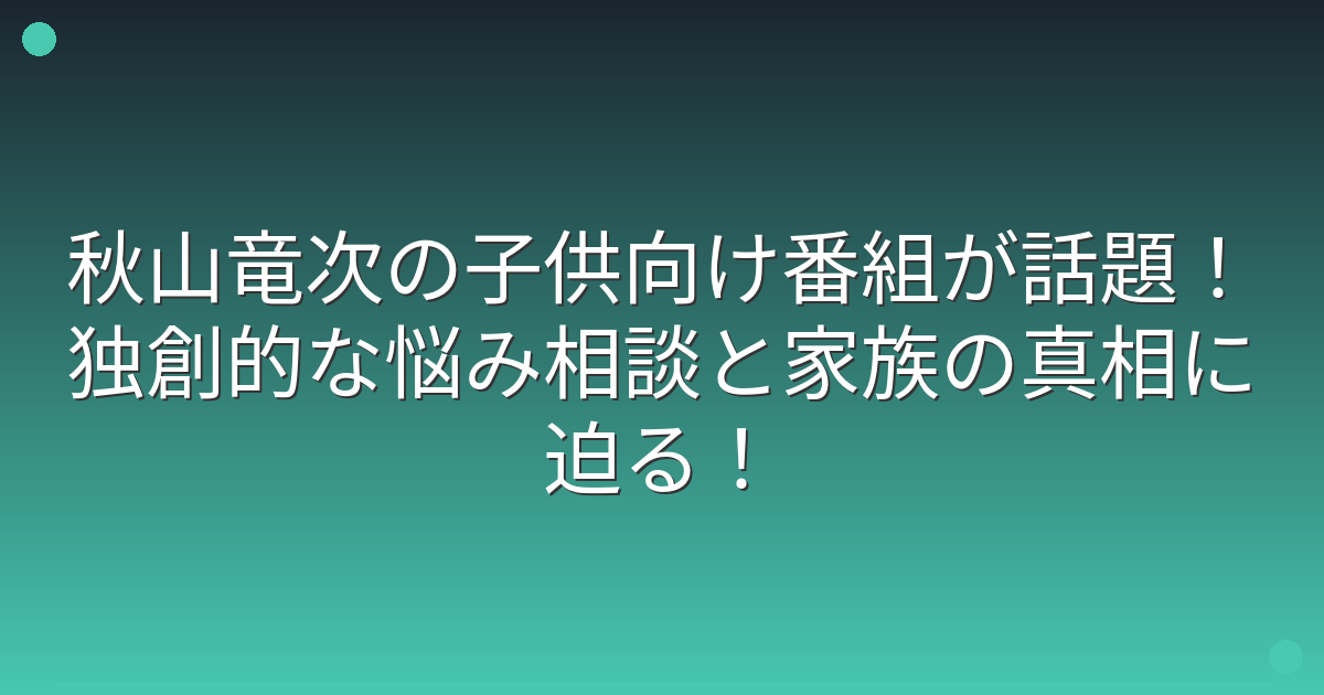 2025年10月3日、秋山竜次さんが新たな子ども向け番組に出演することが発表されました。