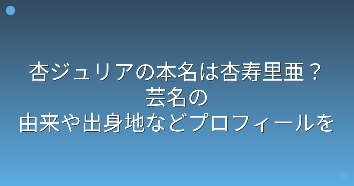 杏ジュリアさんの本名について、複数の情報によると「杏寿里亜(あんじゅりあ)」である可能性が高いと言われています。