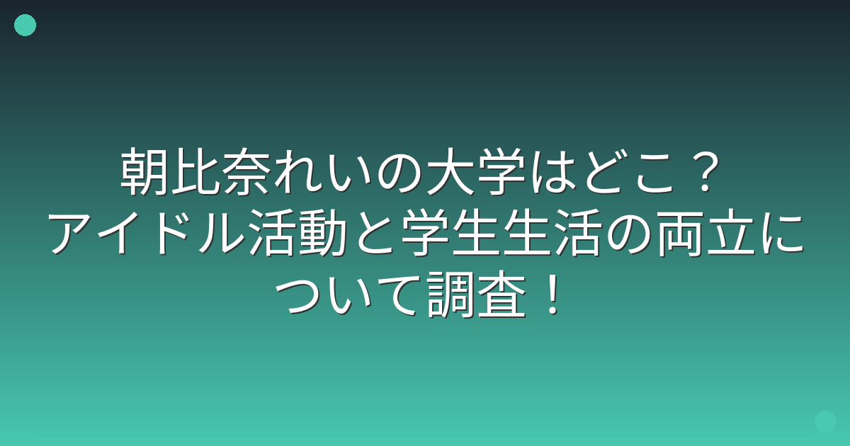 しかし、朝比奈れいさんに関しては大学進学や学業との両立についての情報が確認できないため、現在はアイドル活動に専念している可能性も考えられます。