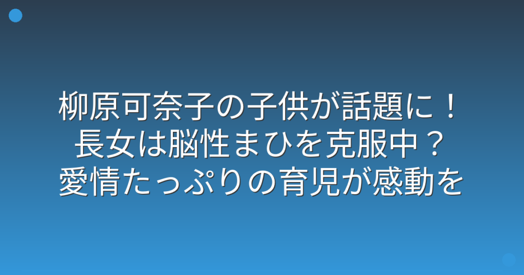 柳原可奈子の子供が話題に!長女は脳性まひを克服中?愛情たっぷりの育児が感動を呼ぶ!