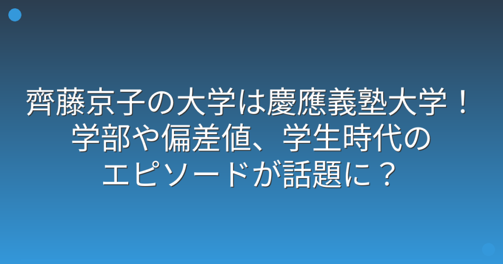日向坂46のメンバーとして活躍する齊藤京子さんの学歴が注目を集めています。 特に齊藤京子さんの大学時代のエピソードや、アイドル活動と学業の両立について、ファンの間で大きな話題となっているようです。 そこで今回は、齊藤京子さんの大学生活につい... -
