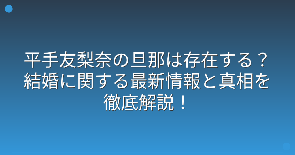 最近、平手友梨奈さんの結婚に関する話題がSNSを中心に盛り上がっています。 元欅坂46のセンターとして活躍し、現在は女優やソロアーティストとして精力的に活動している平手友梨奈さんですが、プライベートな部分、特に結婚に関する情報について多くの方... -