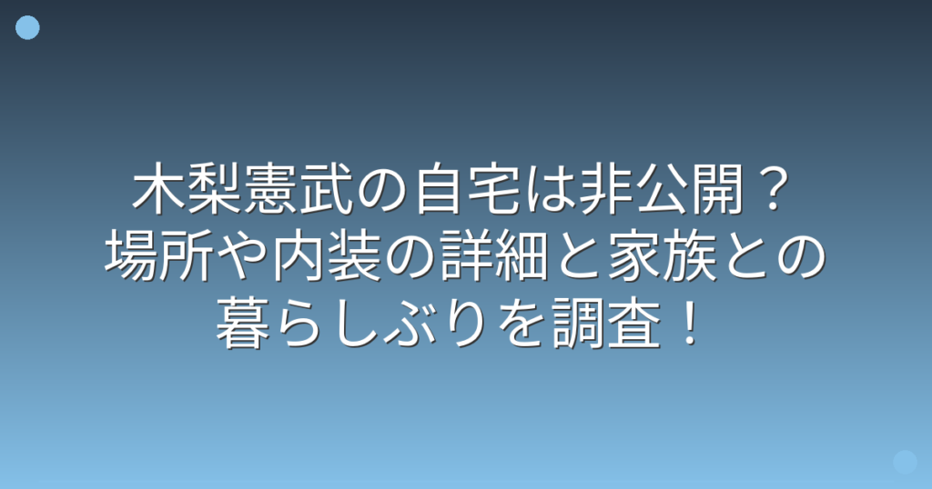 木梨憲武の自宅は非公開?場所や内装の詳細と家族との暮らしぶりを調査!
