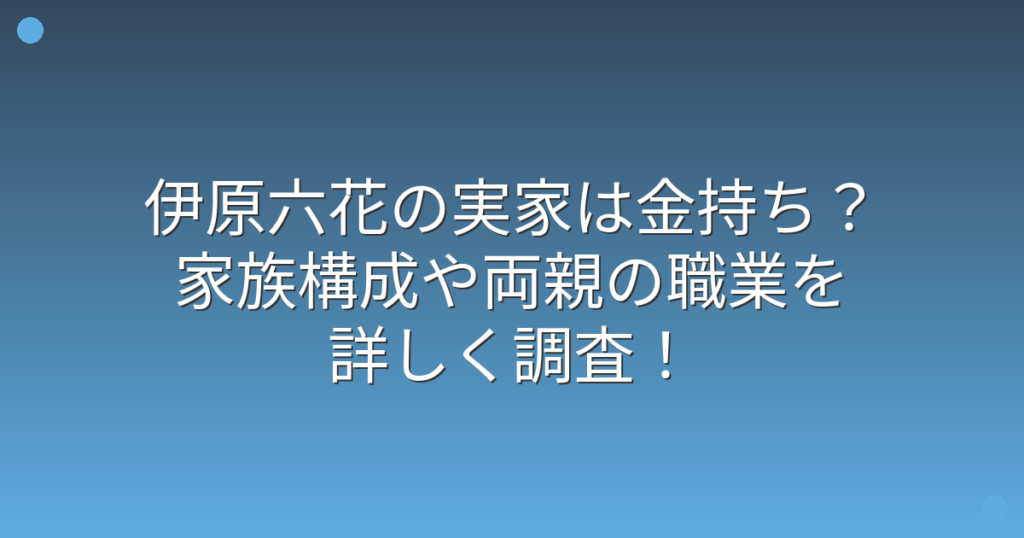 女優として活躍する伊原六花さんの実家が金持ちなのではないかと話題になっていますね。 清楚な雰囲気とナチュラルな演技力で人気を集める伊原六花さんですが、その育った環境や家族についても注目が集まっています。 そこで今回は、伊原六花さんの実家は... -