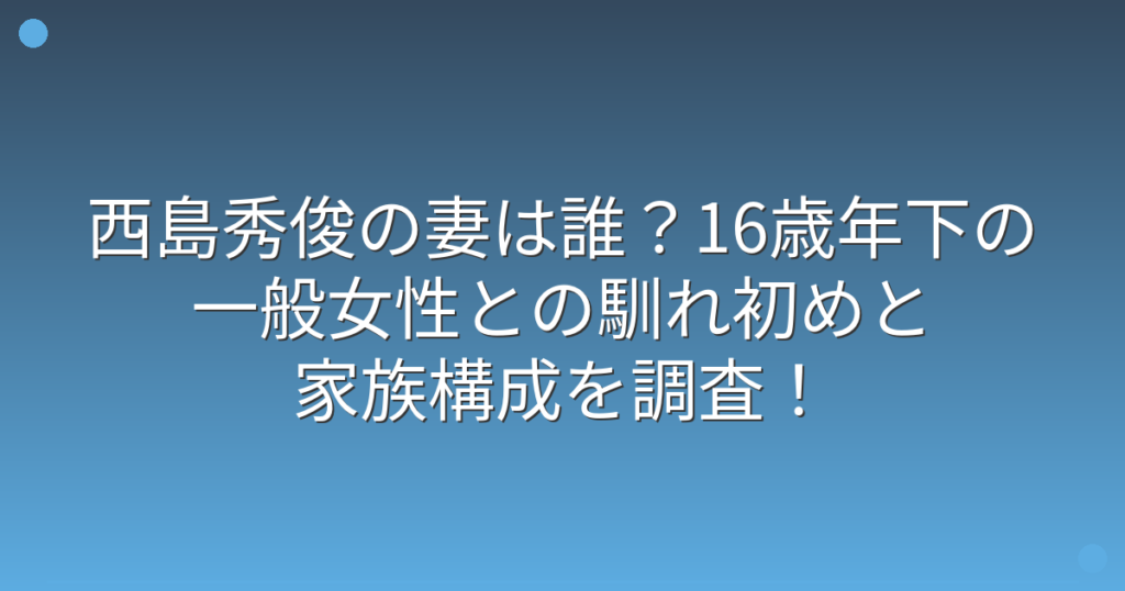 西島秀俊の妻は誰?16歳年下の一般女性との馴れ初めと家族構成を調査!