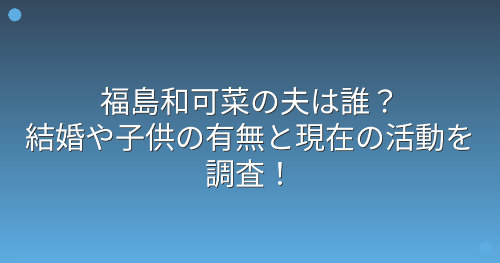 福島和可菜の夫は誰?結婚や子供の有無と現在の活動を調査!