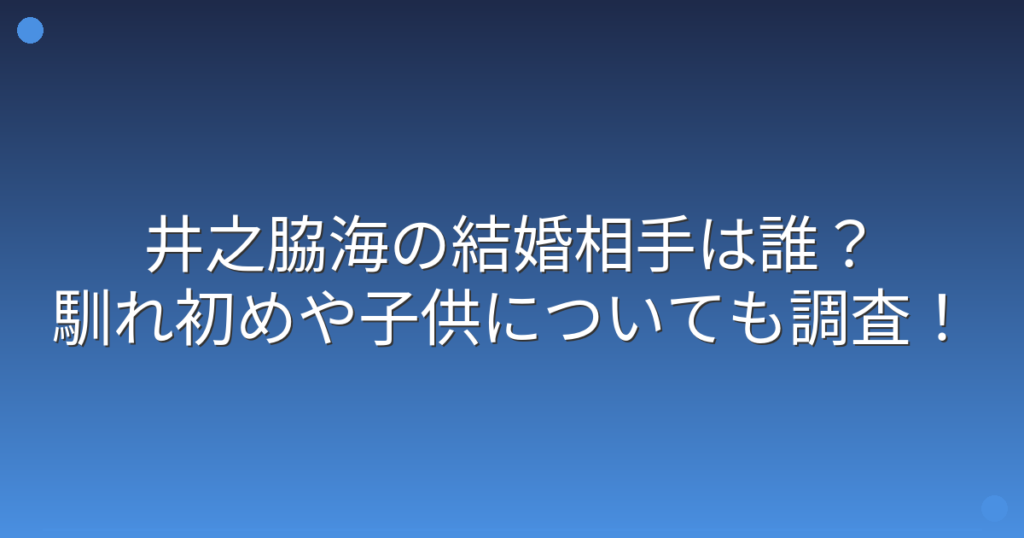 俳優の井之脇海さんの結婚について、ファンの間で大きな関心が集まっていますね。 実力派俳優として数々のドラマや映画で活躍する井之脇海さんですが、プライベートな結婚事情はどうなっているのでしょうか。 そこで今回は、井之脇海さんの結婚相手や馴れ... -