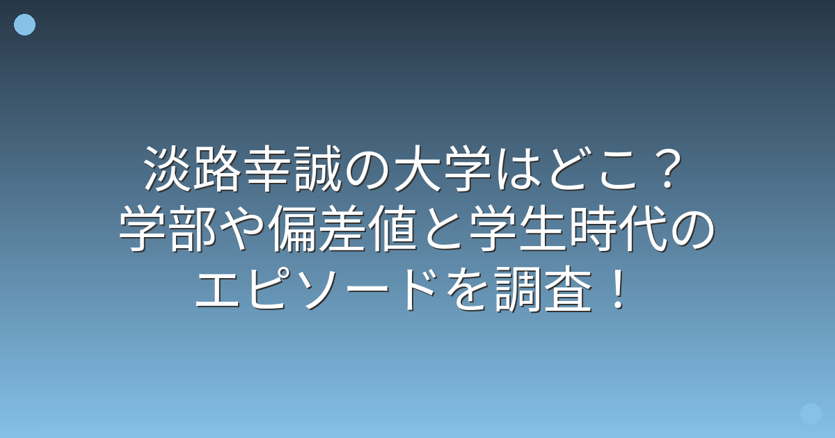 そこで今回は、淡路幸誠さんの大学や学部、偏差値、そして学生時代のエピソードについて詳しく見ていきましょう!