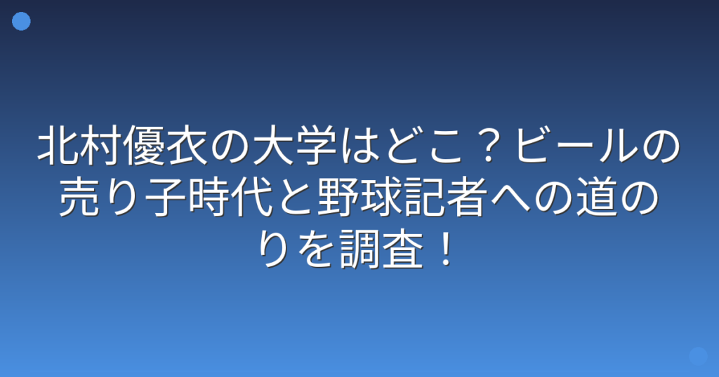 2025年入社のスポーツ報知の記者として注目を集めている北村優衣さんが話題になっていますね。 野球担当記者として活躍する彼女ですが、大学時代にはビールの売り子をしていたという経歴が気になる方も多いのではないでしょうか? そこで今回は、北村優衣... -