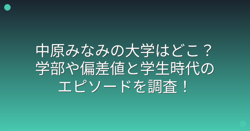 中原みなみの大学はどこ?学部や偏差値と学生時代のエピソードを調査!