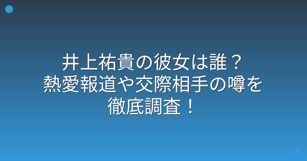 井上祐貴の彼女は誰?熱愛報道や交際相手の噂を徹底調査!