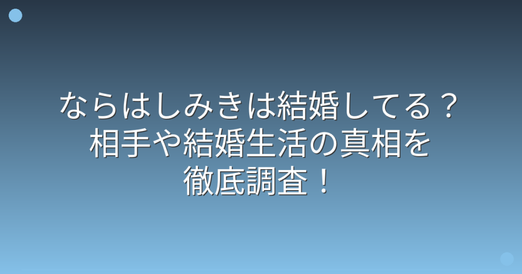 ならはしみきは結婚してる?相手や結婚生活の真相を徹底調査!