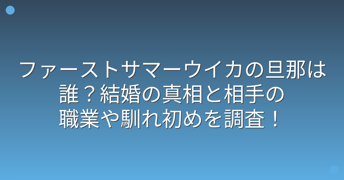 結論から申し上げますと、ファーストサマーウイカさんは現在結婚しておらず、旦那はいません