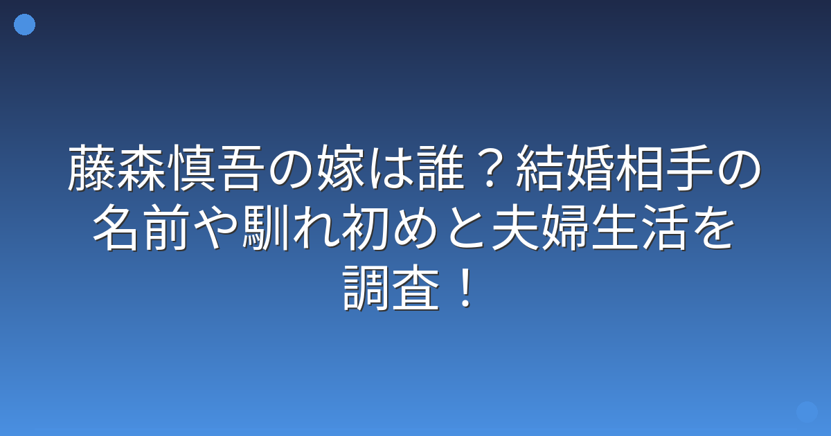 藤森慎吾の嫁は誰?結婚の真相