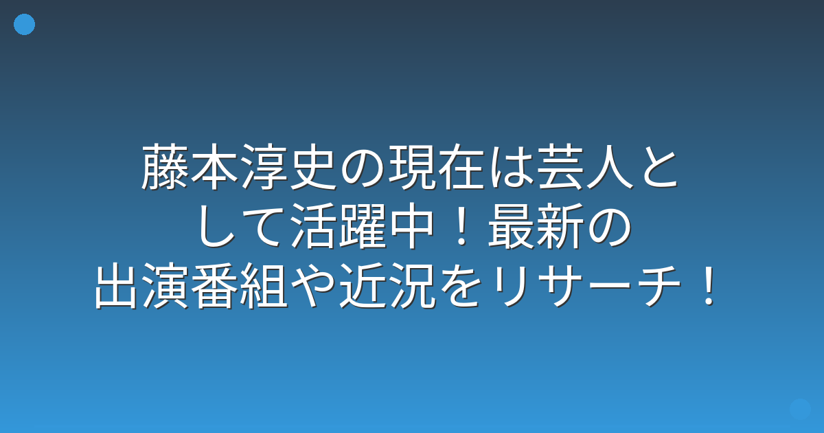 藤本淳史さんは、2025年現在も芸人として第一線で活躍されています。