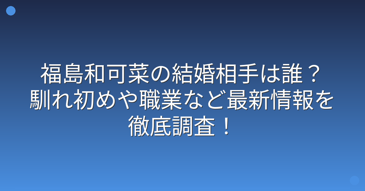 そこで今回は、福島和可菜さんの結婚相手や最新情報について詳しく見ていきましょう!