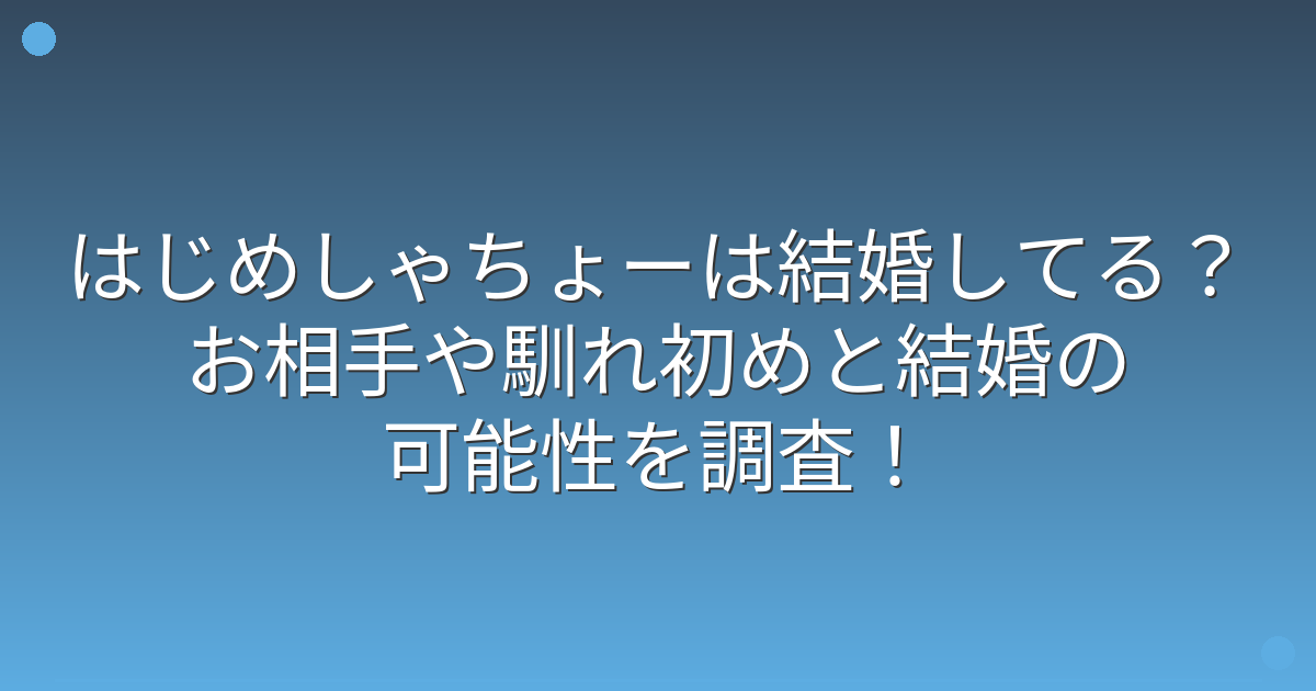 そこで今回は、はじめしゃちょーさんの結婚の有無や恋愛事情、そして結婚の可能性について詳しく見ていきましょう!