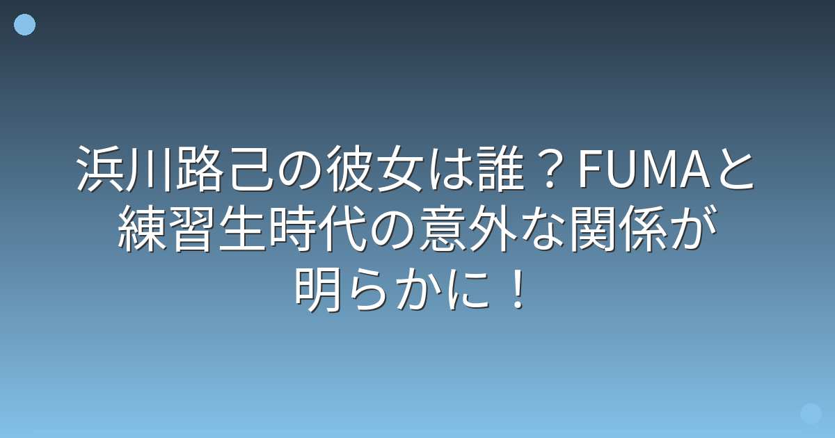 浜川路己さんの彼女に関する情報について、まず現在の状況をお伝えします。