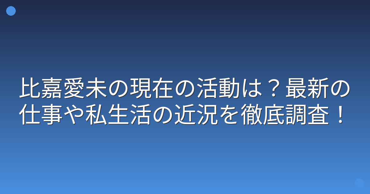 今回は、比嘉愛未さんの現在の活動状況や最新の仕事、私生活の近況についてお伝えしてきました。