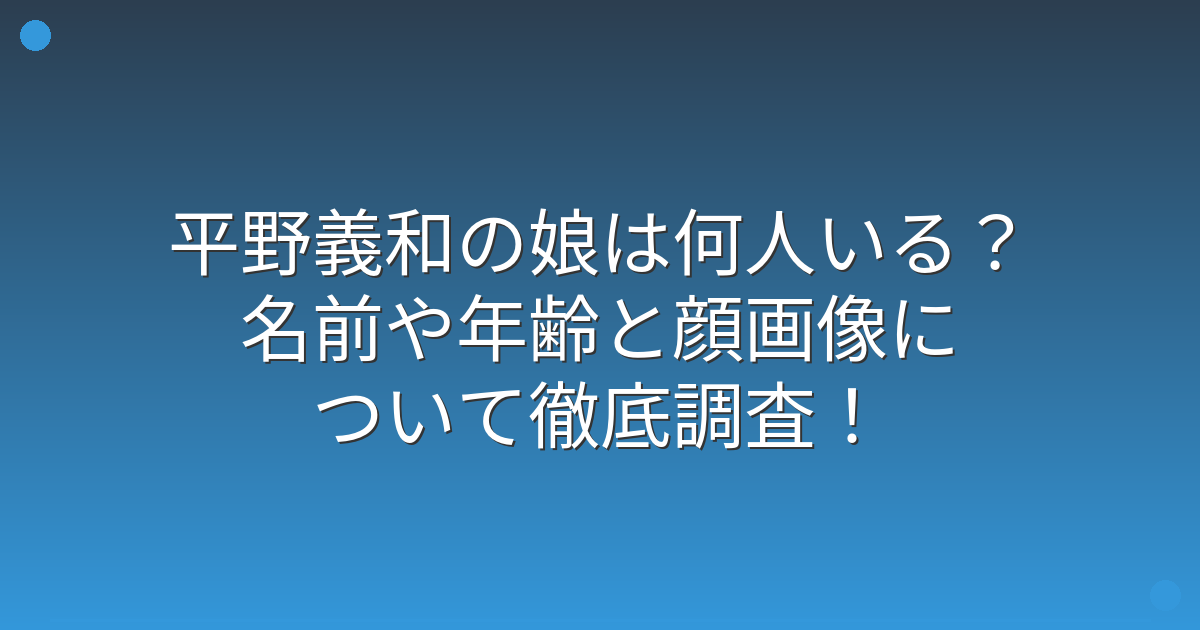 平野義和さんに娘さんがいるのか、いるとすれば何人いるのか、気になっている方も多いのではないでしょうか。
