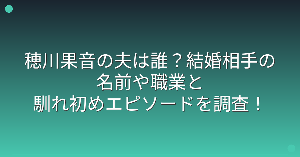 穂川果音さんが結婚しているのか、結婚相手はどんな方なのか気になっている方も多いのではないでしょうか。