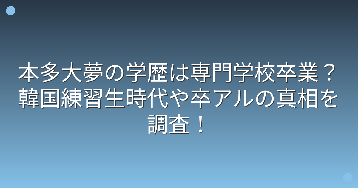 専門学校卒業後に韓国で練習生として活動していたという異色の経歴を持つ本多大夢さんですが、具体的にどのような学歴なのか気になる方も多いのではないでしょうか。