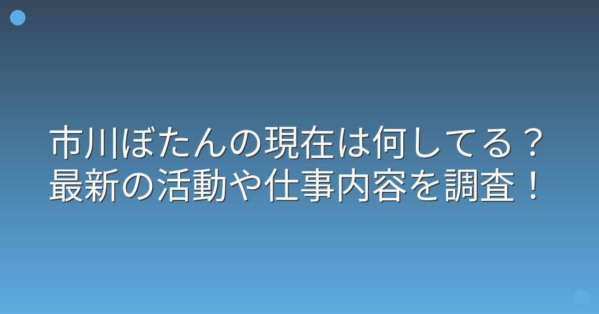 そこで今回は、市川ぼたんさんの現在の活動状況や仕事内容、最新の近況について詳しく見ていきましょう!