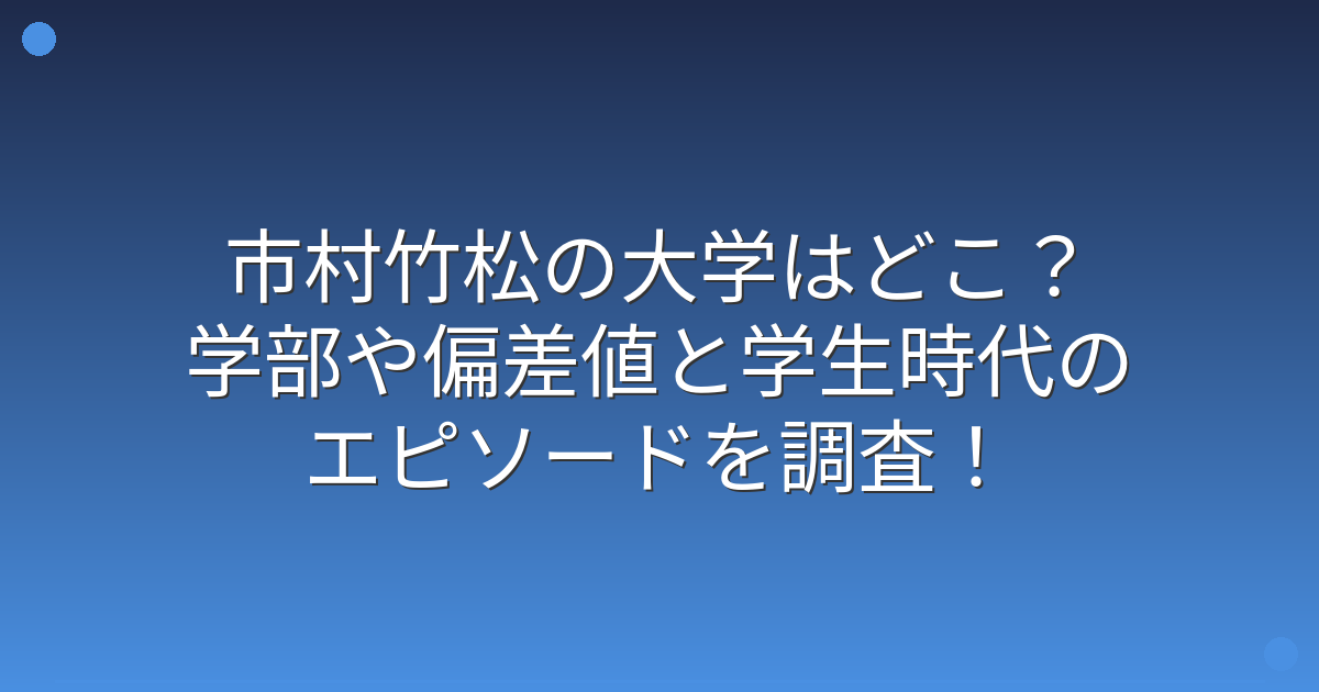 そこで今回は、市村竹松さんの大学や学部、偏差値、そして学生時代のエピソードについて詳しく見ていきましょう!