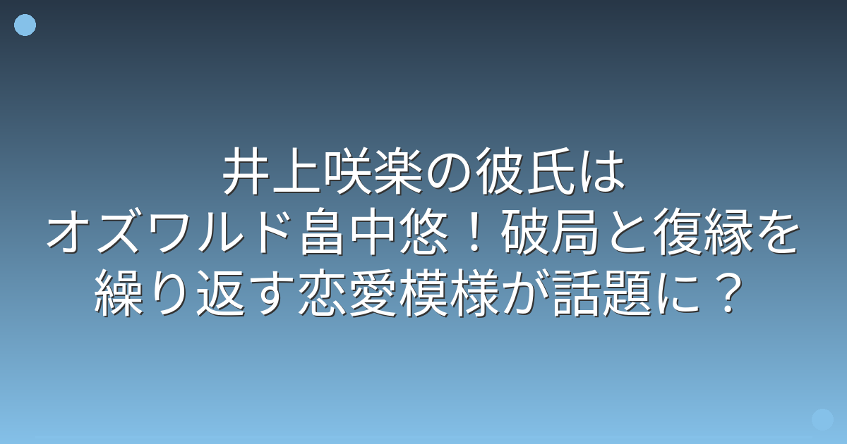 今回は、井上咲楽さんの彼氏がオズワルドの畠中悠さんであることや、二人の破局と復縁の経緯についてお伝えしてきました。