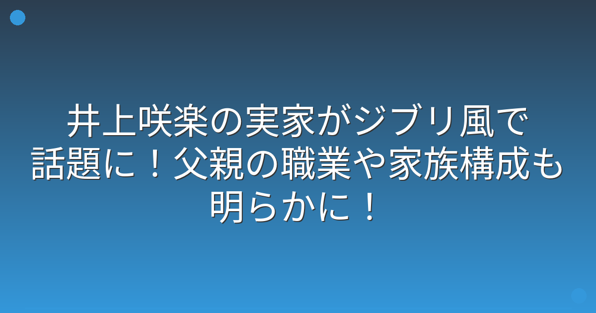 そこで今回は、井上咲楽さんの実家の場所や雰囲気、父親の職業や家族構成について詳しく見ていきましょう!