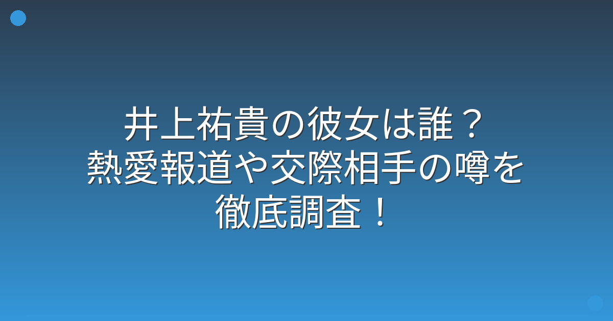 井上祐貴さんの彼女について、多くのファンが気になっているようです。