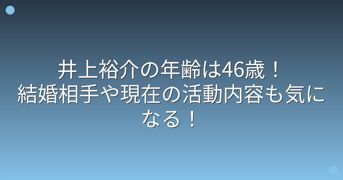 井上裕介さんは1979年3月1日生まれで、2025年10月現在で46歳です。