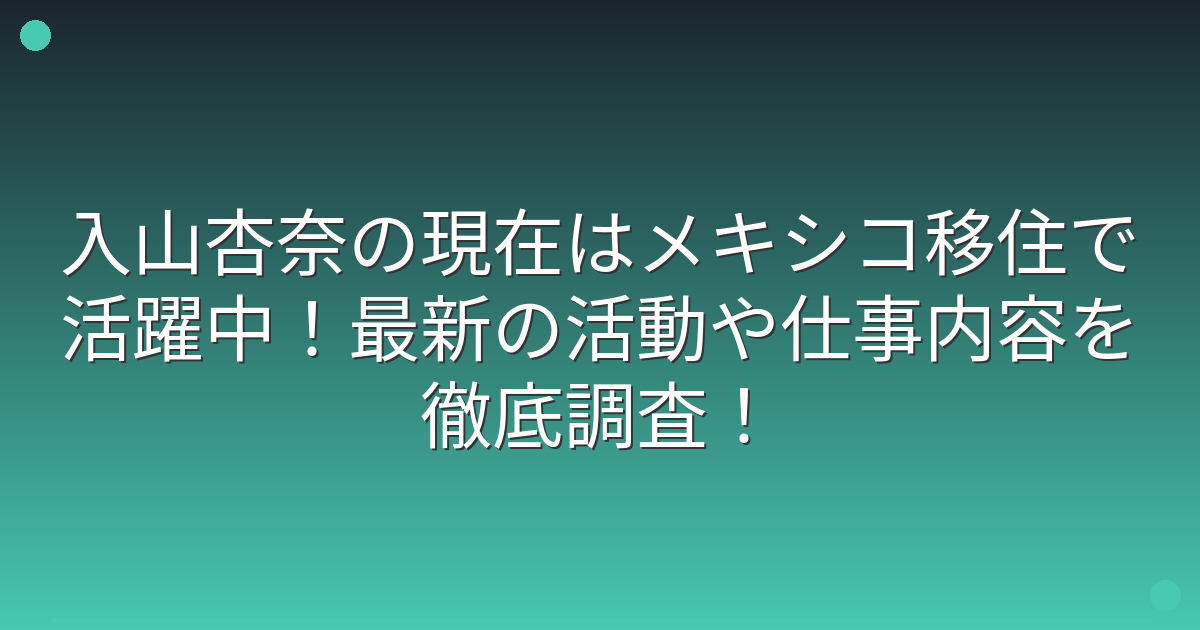 元AKB48メンバーの入山杏奈さんが、現在メキシコに移住して活動していることが話題になっていますね。