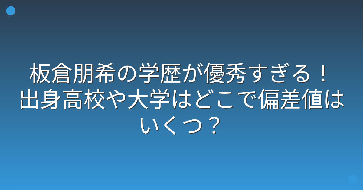 板倉朋希さんは進学校の高校を卒業し、偏差値の高い大学に進学したという優秀な学歴の持ち主です。