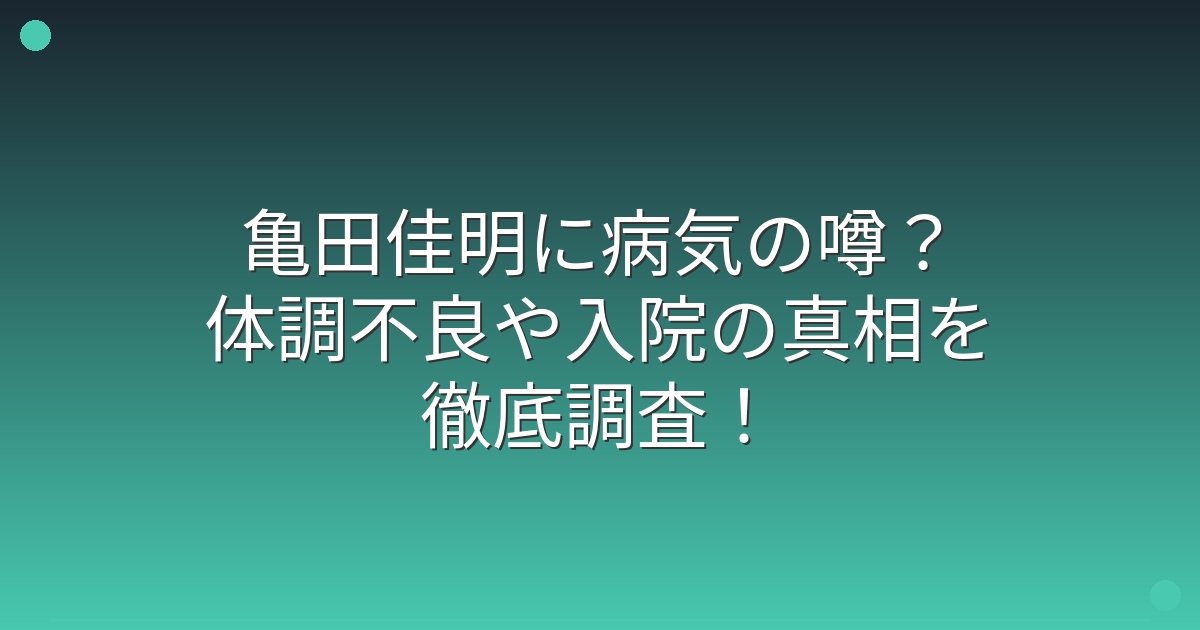 結論から申し上げますと、亀田佳明さん本人が病気であるという事実は確認できませんでした。
